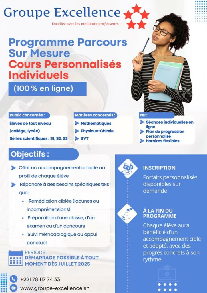 Trouver un encadreur où que vous soyez ! Programme Sénégalais comme Français.