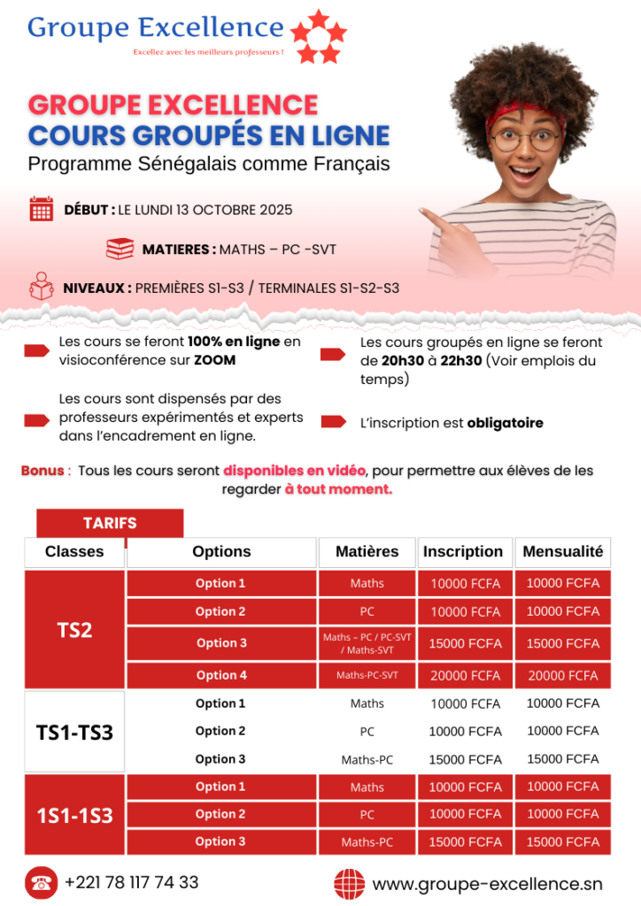 COURS 100 % EN LIGNE - Contactez-nous au 78 117 74 33 - 76 217 97 72