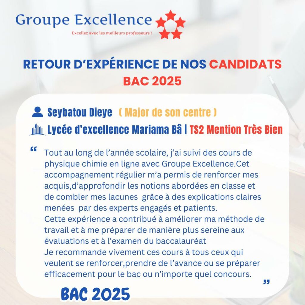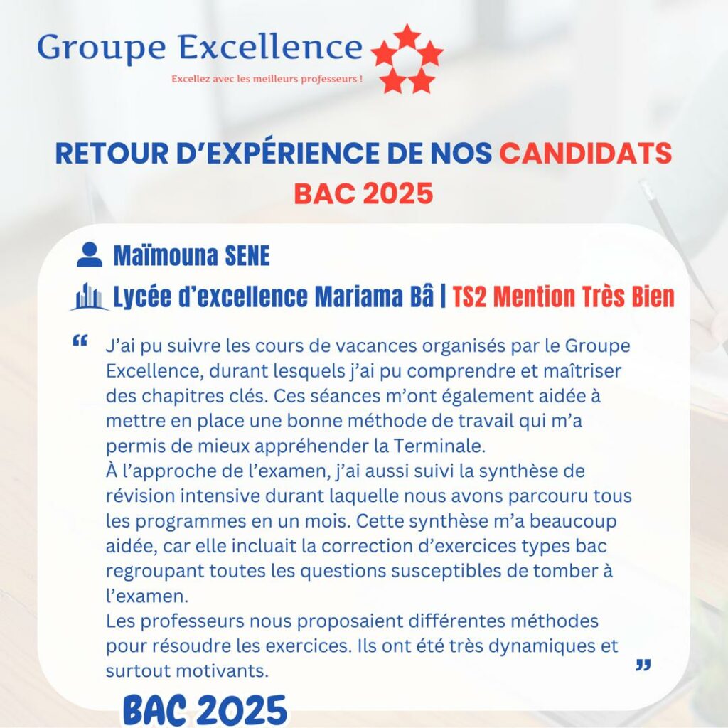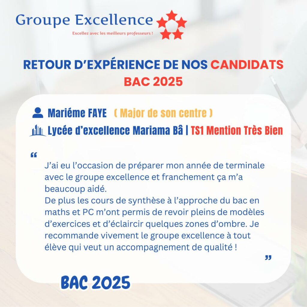 Nos apprenants partagent leur expérience de préparation aux concours d’entrée au Lycée Scientifique d’Excellence de Diourbel (LSED) et aux Lycées Nation-Armée pour la Qualité et l’Équité (LYNAQE), ainsi que l’impact de notre encadrement pédagogique sur leur réussite.