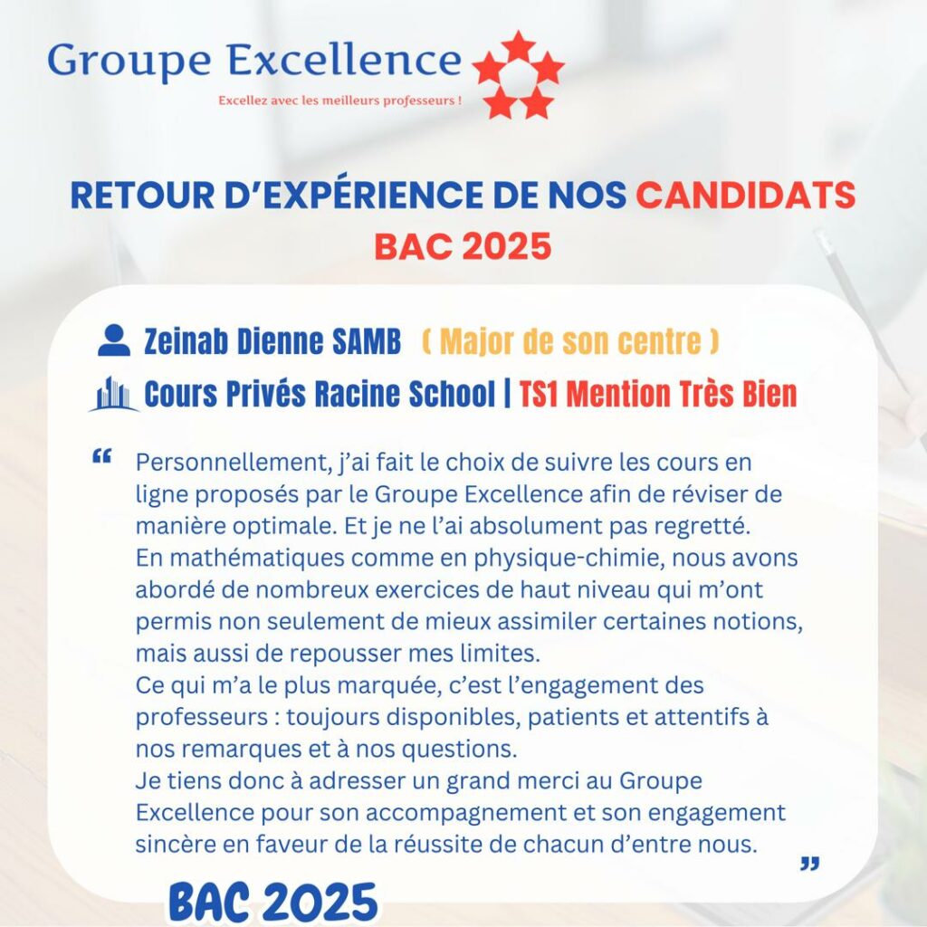 Découvrez les retours d’expérience de nos élèves admis au Bac et aux concours. Leurs parcours illustrent l’impact réel de notre accompagnement.
